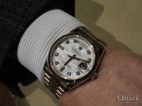 H様 いつもクォ―ク上野本店をご利用頂き誠にありがとうございます。今回はデイデイトRef.118235Aメテオライトのご購入のお手伝いが出来た事、大変嬉しく思います。今回ご購入頂いたデイデイトはケース・ブレス全てに日本人の肌に馴染みが良く上品な輝きを放つ18Kピンクゴールドが惜しげもなく使用されており、ダイヤルには希少な隕石を使用したメテオライトを使っております。あまり人と被る事のない個性溢れる1本です。末長くご愛用頂ければと思います。ご使用頂きしっかりとサポートさせて頂きますのでまた、お時計の事で何かございましたらお気軽にご相談下さいませ。宜しくお願いいたします。