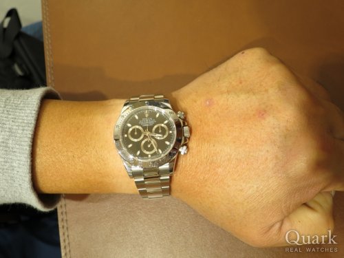 S様、いつもクォーク梅田店をご利用頂きまして誠に有難うございます。S様とお話しさせて頂くのは約4年振りとなりましたが、今回もご対応させて頂き大変光栄でございます。ご購入頂きましたデイトナ Ref.116520ブラックは2016年に生産終了となった今も人気が続いているモデルです。以前よりご検討頂いていたデイトナを手に入れて頂くお手伝いをさせて頂き私もとても嬉しく思います。今後共末永いお付き合いの程、宜しくお願い致します。