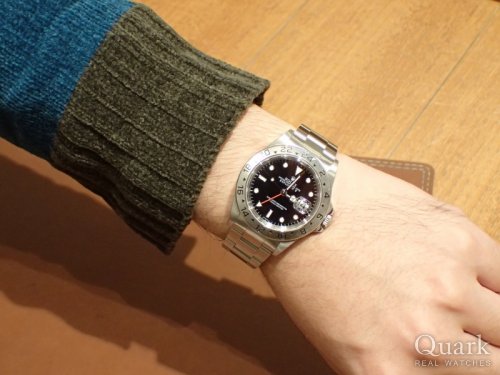 M様 この度はクォークをご利用頂きまして、誠にありがとうございます。以前より検討していたこともあり、とても気に入って頂けたご様子で嬉しく存じます。お選び頂きましたエクスプローラーIIは24時間針を搭載した実用性の高いモデルとなっております。特に海外でお仕事をされているM様には最適なモデルと言えるかと思います。末永くご愛用頂ければ幸いでございます。日本にお戻りの際はブレス洗浄などお持ち下さい。今後ともクォーク心斎橋店もよろしくお願い申し上げます。