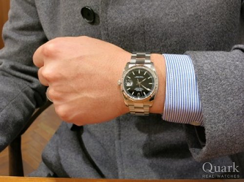 Y様 この度はクォーク心斎橋店をご利用いただきありがとうございます。お選び頂いたデイトジャストは不変的なデザインでロレックスを象徴するモデルでございます。また、装着されているブレスレットの仕様は流通も比較的少なく今回ご紹介できたタイミングはY様が引き寄せた出会いだったのではと思っております。どうかこれからのロレックスライフをお楽しみくださいませ。今後のサポートはしっかりとさせて頂きますので、これからも末永いお付き合いを宜しくお願い致します。 心斎橋店 中野