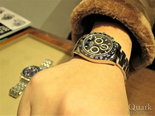 F様 この度は、私共クォークをご利用頂きまして誠に有難う御座います。ご準備にお時間いただきましたが、Ref.116500LN (ブラック文字盤)を気に入っていただき、とても嬉しく思います。F様のお腕元で格好良く輝いておりました!大雪の中、ご来店いただき、誠に感激いたしました!!ロレックスや保証内容に関して、ご不明な点出てきましたら、お気軽にお申し付けくださいませ。今後とも末永いお付き合いの程、宜しくお願い申し上げます。クォーク横浜店 杉野