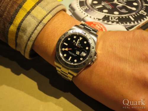 S様 いつもクォーク上野本店をご利用いただき誠にありがとうございます。今回S様にタイミング良くエクスプローラーIIをご案内でき大変嬉しく思っております。今までご使用されていたRef.16570に比べ、ケースサイズが2mm大きい現行モデルの装着感はいかがでしょうか。針やインデックスも大型化され視認性も向上しており、実用性も抜群でございます。今後もしっかりとサポートさせていただきますので、気になる点等ございましたらお気軽にご連絡下さいませ。末長いお付き合いの程、どうぞ宜しくお願い致します。