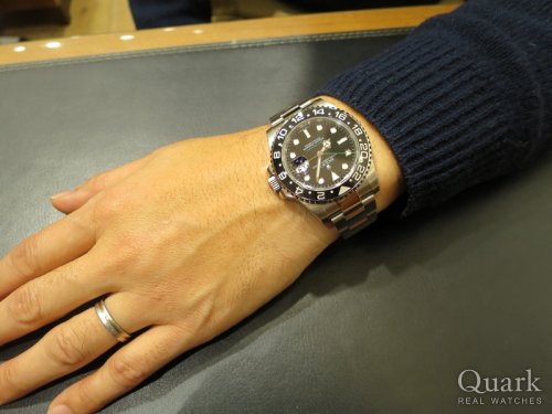 N様、この度はクォーク梅田店をご利用頂きまして誠に有難うございます。たくさんお悩み頂きましたがN様がご納得頂けるモデルをご案内でき大変嬉しく思います。ご購入頂いたブラックベゼルのGMTマスターII Ref.116710LNがとてもよくお似合いでした。ロレックスらしい高級感もあり、ON/OFF問わずお使い頂けるとても万能なモデルでございますので、是非末永くご愛用頂けますと幸いでございます。今後共クォーク梅田店を宜しくお願い致します。 クォーク梅田店 太田原