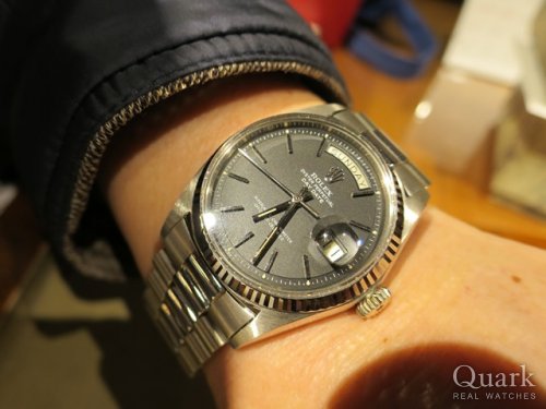 M様 いつもクォーク上野本店をご利用頂き誠にありがとうございます。今回はDAY-DATE Ref.1803/9 ブラックダイヤルのご購入のお手伝いが出来た事、大変嬉しく思います。1960年から1970年後半まで生産され18Kゴールド素材のみで展開されたデイデイトでございます。今回は状態の良いオリジナルのブラックダイヤルとなり当時は黒文字盤の商品は少なく希少性のある個体をM様へご紹介する事ができ、嬉しく思います。ご使用頂きしっかりとサポートさせて頂きますので今後、お時計の事で何かございましたらお気軽にご相談下さいませ。宜しくお願いいたします。