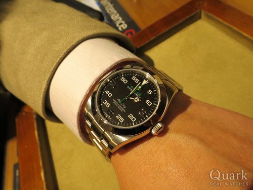 M様 この度は数ある時計店の中からクォーク上野本店をご利用頂き誠にありがとうございます。今回はAIR-KING Ref.116900のご購入のお手伝いが出来た事、大変嬉しく思います。2014年に惜しまれつつ廃番となったエアキングですが、2016年に新型モデルとして復活を致しました。40mmにサイズアップしダイヤルの王冠マークはイエローにまたROLEXのロゴ、秒針にはロレックスカラーであるグリーンを使い、斬新なイメージが人気の理由の一つです。ご使用頂きしっかりとサポートさせて頂きますので今後、お時計の事で何かございましたらお気軽にご相談下さいませ。宜しくお願いいたします。