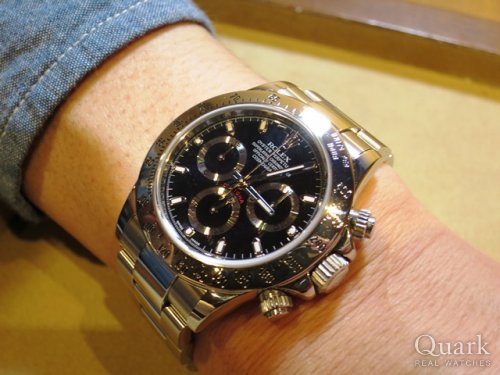 S様 この度はクォーク上野本店をご利用頂き誠にありがとうございます。今回はDAYTONA Ref.116520黒のご購入のお手伝いが出来た事、大変嬉しく思います。2000年にロレックス初の自社製クロノグラフ・ムーヴメントCal.4130を搭載しデビューをしてから16年間に渡り人気の耐える事のないDAYTONAです。生産が終了となった現在でも、『いつかは手にしたい!』と憧れを抱いているお客様が多く、これまでの流通量の少なさから相場も急上昇している大人気モデルです。ご使用頂き、しっかりとサポートさせて頂きますので今後、お時計の事で何かございましたらお気軽にご相談下さいませ。宜しくお願いいたします。