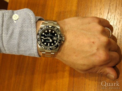 H様:この度はクォーク名古屋店にご来店下さいまして誠にありがとうございます。憧れの時計を手に入れられた際の満足そうなH様を見て、私もとても嬉しくなりました。GMT-MASTERⅡは高級感あるデザインと最大3ヶ国のタイムゾーンを表示できるGMT機能を搭載した大人気パイロットウォッチです。海外に良く行かれるH様にはまさに実用的な時計ですね!是非末長くご愛用頂きたいと思いますので今後とも私がしっかりとサポートさせて頂きます。御時計の事で何か御座いましたらいつでもお気軽にご相談くださいませ。