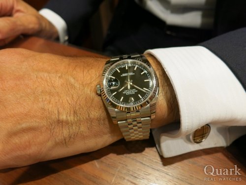 バースイヤーのオイスターデイトを所有しており、使い分けも出来るモデルとして、5連ブレス・黒文字盤の現行デイトジャストを選びました!ロレックスの中でもベーシックなサイズ感やバーインデックスの文字盤も見やすく、落ち着いた雰囲気が気に入っています!