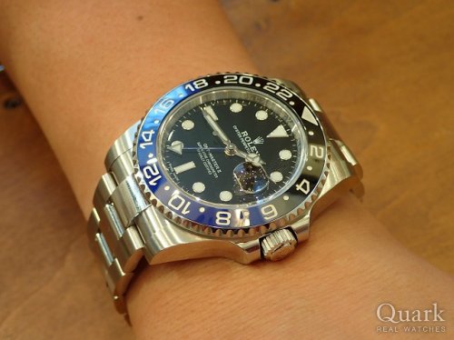 黒ベゼルのGMTと迷っていたんですが、どちらも試着させてもらい、着け比べて心は決まりました。妻の後方支援もあり即日購入させて頂きました。