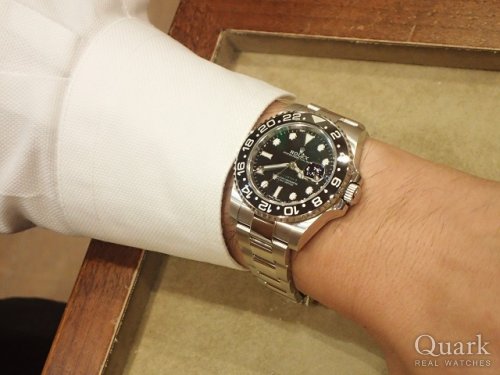 今回、久々のロレックス購入にあたり、GMTマスターの黒ベゼルと青黒ベゼルでかなり悩みましたが、飽きのこないデザインと、以前から思いれのある時計という事で黒ベゼルを選択しました。末永く愛用していきたいと思います。