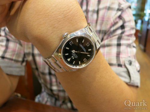 T様 いつも大変お世話になります。この度はエクスプローラーI(Ref.114270)をお買い求め頂き誠に有難うございました。以前からEXIは気にかけて頂いておりましたが、ご来店時の即決にはとても驚きました!コンディションも良く、良いシリアルナンバーというのもありご縁を感じる1本ですね!仰って頂いた通り、数あるロレックスの中でも抜群に使い易い機種だと思います。是非、お持ちでいらっしゃるT様コレクション共々ご愛用頂けましたら幸いです。またお使い頂く上でご不明な点やご用命の際にはお気軽にお申し付け下さいませ。今後とも宜しくお願い致します。