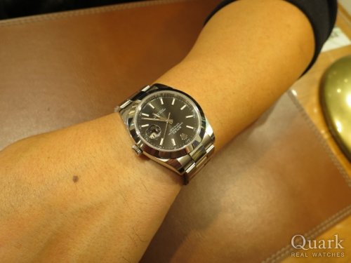 S様、いつもクォーク梅田店をご利用頂きまして誠に有難うございます。今回お選び頂いたデイトジャスト41 Ref.126300ブラックは70時間パワーリザーブに改良された新型ムーヴメントと41ミリケースでありながらシャープなダイヤルデザインが人気を集めています。ブラックダイヤルですが、角度によって少しグレーにも見えるカラーはとても魅力的ですね。今後共安心してご使用頂けるように努めて参りますので、もし何かございましたらお声掛けくださいませ。