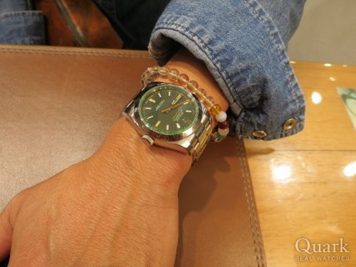 F様、この度はクォーク梅田店をご利用頂きまして誠に有難うございます。F様にご満足頂けるモデルをご案内させて頂き、大変光栄でございます。今回ご購入頂きましたミルガウス Ref.116400GVはグリーンサファイヤガラスとオレンジのイナズマ針が特徴的で遊び心の効いたデザインと現代社会において心強い耐磁性の高さも魅力的ですね。ご使用上で何か気になられる点がございましたらお気軽にご連絡頂ければ幸いでございます。またのご来店を心よりお待ちしております。