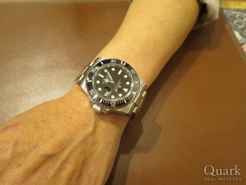 F様、この度はクォーク梅田店をご利用頂きまして誠に有難うございます。今回ご購入頂きましたサブマリーナーデイト Ref.116610LNは艶のあるセラミックベゼルが採用されており、モデルの高級感を一層引き立てていますね。現在ご使用されているヨットマスターと比べると同じ40ミリケースでも形状やお色目も随分変わりますので、使い分けを存分に楽しんで頂けるかと思います。ブレスレット洗浄等簡易メンテナンスも承っておりますので、またお気軽にご来店くださいませ。