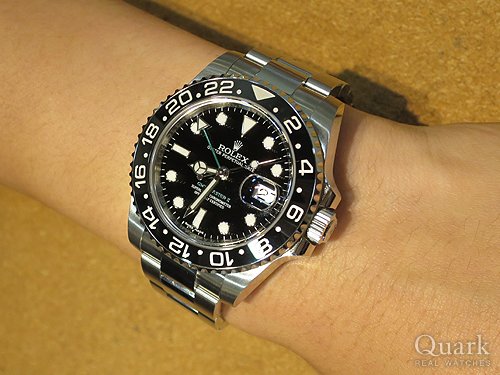 H様、この度はクォーク福岡パルコ店をご利用頂き誠にありがとうございました。ご遠方からのご来店大変嬉しく思っております。お求め頂きました『GMT-MASTER II Ref.116710LN』は、ロレックスカラーのグリーンのGMT針がとても格好良く、セラミックならではの艶感とブレスレットの鏡面部分が高級感を演出してくれるポーツモデルです。オンオフ問わずご愛用頂けますので、今後も末永くご愛用頂ければ幸いです。また何かご不明な点などありましたら、お気軽にお問合せ下さいませ。今後とも宜しくお願い致します。