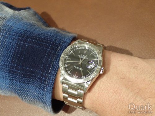 T様 いつもクォークをご利用頂きまして、誠にありがとうございます。サンダーバードの使い心地は如何でしょうか。様々な時計を愛用してきたT様が行きついたシンプルな時計の中にT様のこだわりを突き詰めて選ばれたように感じられました。デイトジャスト中でも少し違う雰囲気を持つ時計となりますので、長くご愛用頂けると思います。また、ブレス洗浄などお気軽にご来店下さい。今後ともクォーク心斎橋店もよろしくお願い申し上げます。