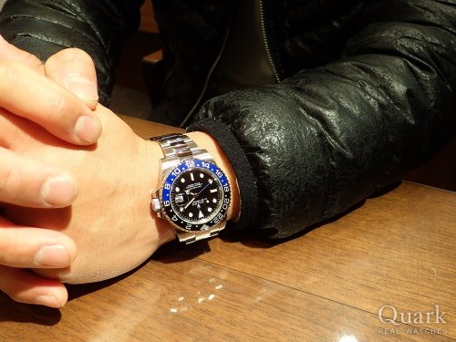 この度は、ご来店ならびにご購入をいただきまして誠にありがとうございました。こうして写真で見ても、ブルーのセラミックが程よくアクセントになっていてとてもかっこいいですね!ブレス部分の鏡面仕上げの輝きも素敵で、高級感+スポーツテイストの両方が楽しめるGMTマスターII Ref.116710BLNRは、きっとO様のオフの日を何倍も充実させてくれる事と思います。3年前からの思い、そのお話を聞いて自分の経験と重ねて感慨深い気持ちで対応させていただきました。大切なロレックスをしっかりサポートしてまいりますので、今後ともよろしくお願いいたします。ご紹介いただきましたY様にもよろしくお伝えくださいませ。ありがとうございました。クォーク横浜店 長本