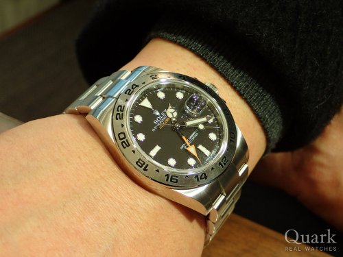 M様 この度はクォーク横浜店をご利用くだいまして誠にありがとうございます。現行モデルのエクスプローラーIIですが、オンオフ問わず使えるデザインと機能性、そしてボリューム感あるケースが大変魅力的なモデルです。がっちりされたM様の腕元に大変お似合いでしたし、用途としても間違いないモデルかと思います。既にお持ちの時計とはサイズ感やデザイン等全く異なりますので、これから新しいロレックスライフをお楽しみくださいませ。今後とも末永いお付き合いの程、宜しくお願いいたします。 クォーク横浜店 濵松