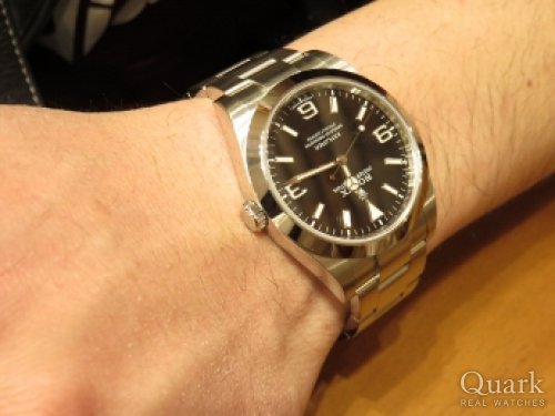G様 この度はクォーク神戸店をご利用頂き、誠にありがとうございます。お選び頂いた、現行型エクスプローラーIはケース径が39ミリあり存在感は抜群です。G様はシンプルな服装がお好きということでしたので、まさにピッタリなモデルですね!現行型ですので、文字盤に369の夜光が入りますので視認性も良くなっております。機能性に優れた1本ですので、末永くご愛用頂ければ幸いです。ご使用される中で気になる点などございましたら、お気軽にお申し付け下さいませ。今後ともクォーク神戸店を何卒宜しくお願い申し上げます。