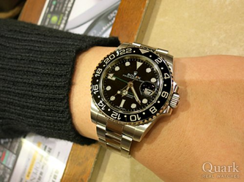 他の時計メーカーとも色々悩みましたが、クォークさんに初めて訪れ、垣見さんに出会い、垣見さんオススメのGMTマスターIIに決めました。人生初の自分で購入した高い時計でしたが、垣見さんの人柄と丁寧な対応で安心して購入出来ました。大切に使っていきます。ありがとうございました。