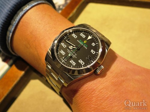 O様 いつもクォーク上野本店をご利用頂き誠にありがとうございます。今回はAIR-KING Ref.116900のご購入のお手伝いが出来た事、大変嬉しく思います。これまでエアキングからケースを6mm大きくして40mmとなり2016年に登場したRef.116900.ダイヤルのイエローの王冠マークやロレックスのロゴがグリーンなど遊び心を感じられます。ご使用頂きしっかりとサポートさせて頂きますので今後、お時計の事で何かございましたらお気軽にご相談下さいませ。宜しくお願いいたします。