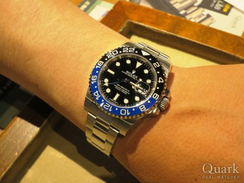 今回ご購入頂いたGMTマスターⅡは2013年にブルー×ブラックのツートンベゼルで登場し、これまでのGMTマスターのラインナップには無かったカラーが話題を集めました。また今年のバーゼルワールドで新型ムーブメントCal.3285を搭載したジュビリーブレス仕様が発表となりオイスターブレスのRef.116710BLNRは僅か6年余りで生産が終了となりました。その後、生産期間の短さから、お求めになる方が急増し値上がりを続けております。ご使用頂きしっかりとサポートさせて頂きますので今後、お時計の事で何かございましたらお気軽にご相談下さいませ。宜しくお願いいたします。