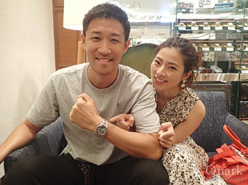 Y様 この度はクォーク名古屋店をご利用頂き、誠にありがとう御座います。Y様、念願のロレックスとなりましたね。おめでとうございます!何よりY様の嬉しそうな表情で、ご担当させて頂いた私も嬉しく思います。奥様も一緒に悩んで選んで頂き、お二人の仲睦まじさを感じ、終始とても楽しい時間でした。素敵な笑顔のお写真まで頂いて、ありがとう御座いました。バッチリお似合いですね!お選び頂きましたGMTマスターIIは、スポーツモデルの中でも高級感のあるデザイン性でワンポイントのグリーンもお洒落さを感じますね。これから始まるロレックスライフを存分に楽しんで下さいませ。今後もご相談などが御座いましたら、お気軽に私までご連絡下さいませ。またY様ご夫婦にお会い出来る日を楽しみにしております。
