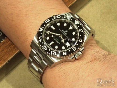 H様 この度はクォーク仙台店をご利用くださいまして誠にありがとうございます。ずっとお悩みいただいておりましたが、ようやくGETされましたね!本当におめでとうございます!!悩んでいらっしゃる間にお値段の変動も大きくありましたが、『欲しい』と思ったときに購入されることが一番大切だと思います。GMT-MASTERIIは最近のモデルチェンジもあり、Ref.116710LNも注目度が高まりました。引き締まったブラックのフェイスに、遊び心あるロレックスカラーの緑針、ちょっとしたアクセントもオシャレで素敵でございます。この日までにはきっとたくさんの家族会議もあったことでしょう・・・たまに戻っていらっしゃるお子様とのやりとりが面白かったです(笑)。これからはご家族の大切なお時間を刻んでくれる最高の相棒として活躍してくれること間違いナシでございます。お子様にも少しずつロレックスの魅力を伝えてください。Ref.116710LNは、通常より針が1本多い分、使い方もちょっとだけ難しいかもしれませんが、分からなくなりましたら、何回でもご説明いたしますので、いつでもご相談くださいませ。ご旅行とお買い物と・・・忘れられない思い出になりそうですね。記念すべき日のお手伝いができ大変光栄でございます。店頭にてブレス洗浄、サイズ調整を無料で承っておりますので、仙台にお越しの際はまた遊びにきてください。それでは今度とも末永いお付き合いのほど宜しくお願い申し上げます。