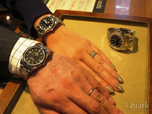 I様 この度はクォーク上野本店へご来店頂きまして誠に有難うございます。 今回もI様へお時計をご案内できたことを心より嬉しく存じます。 EXPLORERIは現行モデルと5桁モデルでケースサイズも異なりますので、今回ご紹介させていただきましたようにペアでお使いいただける点が非常に魅力ですね! おそろいのEXPLOER、非常に良くお似合いでございました。 今回で陸、海、空と揃いましたので、次回はSUBMARINERのコンプリートを是非サポートさせて頂けますと光栄でございます。 お使いいただくうえで何かご不明な点がございましたら青木までご相談ください。 今後とも末永いお付き合いの程、宜しくお願い致します。 上野本店 青木