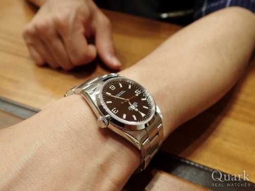T様、この度はクォーク神戸店をご利用頂きまして誠に有難うございました。日頃よりご愛顧頂き心より感謝申し上げます。今回ご購入を頂きました Ref.114270は、2001年から2010年まで生産されていた、最後の36mmケースのエクスプローラーIです。中でもこちらは、生産終了年にわずかしか存在しないシリアルナンバーがランダムとなるお品。いうまでもなくとても稀少で中々お目にかかれません。今回ご依頼を頂き、少しお待ちをいただきましたが無事にご案内かない、お喜び頂けてとても嬉しく思います。T様の腕にとてもフィットしお似合いでございました。末永くご愛用頂けましたら幸いです。今後もご指名頂けますよう、しっかりとサポートをさせて頂きます。何かご要望などございましたら、私井内までお気軽にお申し付けくださいませ。また、ブレスレットの洗浄及び調整も無料で行っておりますので、お近くに来られた際には是非遊びにいらして下さい。心よりお待ち致しております。 クォーク神戸店 井内