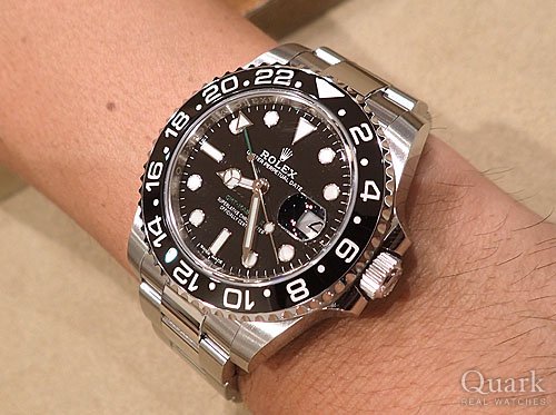 K様、この度はクォーク福岡店をご利用いただき誠に有難うございます。お買い上げ頂きました『GMT-MASTER II / Ref.116710LN』は今年ラインナップから突如ブラックが廃番となり、注目度が高まっているモデルです。K様の仰る通りセラミックベゼルやブレスの鏡面仕上げ等、スポーツモデルながら華やかな雰囲気が感じられるデザインで、オンオフ問わずご使用頂けると思います。