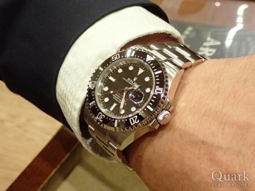 S様 この度はクォーク仙台店をご利用くださいまして誠にありがとうございます。S様を寝不足にさせてしまうほどのロレックス、困ったものですね(笑)。2017年に新型モデルとして新しく生まれ変わったSEA-DWELLER/Ref.126600、サイクロップレンズがついて日付も見やすく、インパクトある43mmケース径はがっちりとしたS様の腕にもピッタリでございますね。大変お似合いでございます。気付いたら旅立ってしまったGMT-MASTERさんのことは本当に残念でございますが、これからはSEA-DWELLERさんがS様の相棒として頑張ってくれると思います!さすがにこの重量感あるお時計を落とされたら気付いてくれるかと思いますが(笑)、それでも落とさないように気を付けてくださいね。これからもS様のロレックスライフがいつまでも続いていきますよう、私も応援いたしますので、なにかお困りの際はいつでも私までご相談くださいませ。店頭にてサイズ調整、ブレス洗浄を無料で承っておりますので、またお店にも遊びにきてくださいね。S様とお話し出来る日を楽しみにしております。それではこれからも変わらぬご愛顧を賜りますよう、宜しくお願い申し上げます。