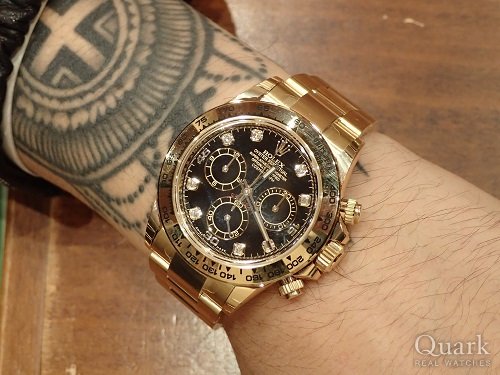 S先生,非常感谢您本次光临夸克新宿店,能够帮您挑选中心仪的手表是我的荣幸。其次再感谢您朋友的介绍。您的介绍是对我们的服务最大的肯定。现在受到钢迪市场价格上涨的原因,纯金迪通拿的市场流通量也是逐年减少,特别的您选择的这款黑盘带钻款,更是十分之稀有。下次有机会再有意购买劳力士手表,请务必多多关照。如果在手表使用中遇到任何问题,可以通过微信(ID:Quark909)联系我们。让您安心,放心,可以做到真正的一劳永逸。祝您生活愉快,谢谢。 クォーク新宿店 何伟东