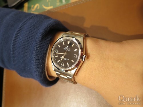 O様、この度はクォーク梅田店をご利用頂きまして誠に有難うございます。O様にご満足頂けるモデルをご案内出来て大変光栄でございます。今回ご購入頂きましたエクスプローラーI Ref.14270は1990年代の人気絶頂だった頃から2度のモデルチェンジを果たし、現在の最新型はサイズアップしておりますが、今となっては貴重な36ミリサイズのモデルとして改めて評価が高まっております。拘りをお持ちのO様にはピッタリではないでしょうか。シンプルなデザインは使い勝手も良く、長くご使用頂けるモデルですので何かお困りの事がございましたら気軽にお声掛けくださいませ。またのご来店を心よりお待ちしております。