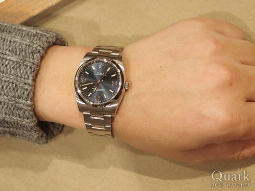 H様 この度はクォーク仙台店をご利用くださいまして誠にありがとうございます。サイズ感重視でお選びいただきました「Ref.114200 オイスター・パーペチュアル」は腕もとにおさまりやすく、厚さも丁度良いので色々な服装に合わせやすいデザインでございます。また、369インデックスとブルーダイヤルの組み合わせも良く、使い勝手が良いモデルです。今後は様々なシーンでご愛用いただけることと存じます。何かございましたらお気軽にお申し付けくださいませ。どうぞよろしくお願いいたします。