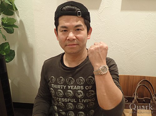 T様 この度はクォーク名古屋店を御利用頂き、誠にありがとうございます。エバーローズゴールドとシェル文字盤の組み合わせは高級感があり、宝飾としての輝きも魅力としてある1本になります。正に50歳の節目に相応しい御時計だと思います。一生物として御愛用頂ける様、精一杯サポートさせて頂きますので、何か気になる事が御座いましたら、遠慮無く御相談下さい。次回はI様と一緒に遊びにいらして下さいね(笑)