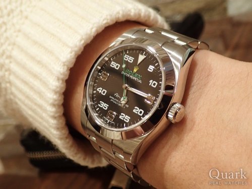F様 この度はクォーク福岡店をご利用頂き、誠にありがとうございます。新型のエアキングは従来のモデルから大幅にデザインが変更され、ROLEXの中でも一味違う個性を楽しめるモデルとなっています。日常使いからビジネスシーンまで幅広くご愛用頂ければ幸いでございます。また近くまでお越しの際はブレスレットのクリーニングも兼ね、お気軽にお立ち寄り下さいませ。今後とも末永いお付き合いの程、宜しくお願い致します。
