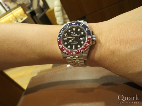 H様、いつもクォーク梅田店をご利用頂きまして誠に有難うございます。今回はお子様のご誕生に合わせての記念となるご購入を頂き大変光栄でございます。GMTマスターII Ref.126710BLROは2017年に待望の赤青ベゼルが復活した事で話題となり、世界的に人気が高いモデルです。機能面に関してもパワーリザーブや耐久性等、従来のタイプに比べてより改良された新型ムーブメントが搭載されております。何か気になる点等ございましたら気軽にお声掛けくださいませ。今後とも末永いお付き合いの程、宜しくお願い致します。