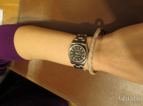 ロレックスはやっぱり黒!最初はボーイズサイズで考えていましたが、試着してみて26ミリに決めました。