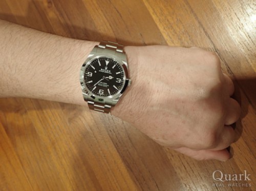 H様 いつもクォーク名古屋店を御利用頂き、誠にありがとうございます。現行のエクスプローラーⅠはサイズアップする事によってスポーツモデルらしい雰囲気となりました。シンプルでありながら他の高級時計とも見劣りしないところは流石ですね!H様のしっかりした腕にとても良くお似合いでしたよ。今後も大切な時計をしっかりサポートさせて頂きますので、何か気になる事が御座いましたら、遠慮無く御相談下さい。