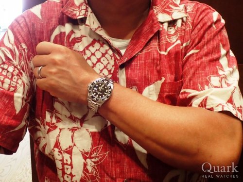 N様 この度はクォーク仙台店をご利用くださいまして誠にありがとうございます。前日にあれほどEXPLORERIIへの愛をお伺いしておりましたので、当日の『こっちをください』の予想外のお言葉に、心の声がしまいそうでした(笑)。ずっとほしかったGMT-MASTERII/Ref.116710LN、生産終了モデルの新品を今回偶然にもご案内でき、喜んでいただけて大変嬉しく存じます。奥様との思い出のEXPLORERIIの分もあわせて、ずっとご愛用いただけましたら幸甚に存じます。今度は絶対に、絶対に、目を離さないでくださいね(笑)。N様のロレックスライフが楽しい時間として続いていきますよう、私も応援いたしますので、なにか気になることがございましたら、いつでもご相談くださいませ。生産終了後の新品は、いつでも手に入るものではございませんので、『やっぱりEXPLORERIIもほしいな~』という気持ちがでてきましたら生産終了する前にご検討をオススメいたします。今後もどうなるかわかりませんからね~(笑)。店頭にブレス洗浄、サイズ調整を無料で承っておりますので、お近くにお越しの際はお店にも遊びにきてください★それでは今後とも末永いお付き合いのほどよろしくお願い申し上げます。