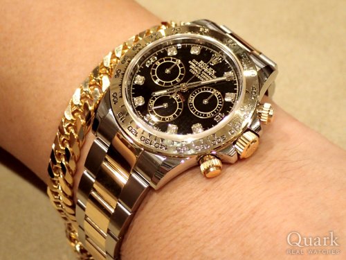 K様 この度はクォーク仙台店をご利用くださいまして誠にありがとうございます。コンビモデルは色々ございますが、黒文字盤のこちらがバシッとK様のお腕と共鳴致しておりましたので、他の選択肢が見当たりませんでした笑。写真を拝見致しましても、やはり格好良くて間違いない1本であったと振り返ります。K様はこれくらい輝きがあるロレックスでないと・・と感じてしまっております。他に気になるモデルをお伺いさせて頂きましたが、「そろそろ・・」というタイミングの頃にお電話を差し上げるかもしれません笑。今後とも末長いお付き合いの程、よろしくお願い申し上げます。
