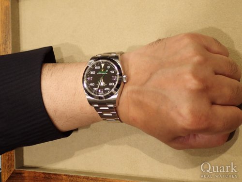 O様 この度はクォーク仙台店をご利用くださいまして誠にありがとうございます。また、お褒めのお言葉を頂戴しまして大変恐縮です。耐磁機能を備えたエアキングは、現代の磁気に囲まれた日常生活においては、特に機能を発揮してくれる素晴らしいモデルでございます。また、以前のエアキングよりサイズアップした迫力あるケースサイズ、コックピット計器を彷彿とさせるダイヤルデザイン等、魅力が詰まった素晴らしいモデルです。大切なオイスターデイトと併せてお楽しみくださいませ。今後もどうぞよろしくお願いいたします。