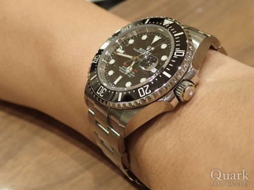 F様 この度はクォーク福岡店をご利用頂き、誠にありがとうございます。タイミング良くご検討のモデルをご案内でき、嬉しく思います。ダイバーズモデルの中でも迫力のある43ミリケースに、赤字のモデル表記がワンポイントとなる新世代のシードゥエラーは未だに多くのお問い合わせを頂く人気のモデルです。永くご愛用頂ければ幸いでございます。今後は時計の簡易的な洗浄やメンテナンスまでF様の時計をサポート致しますので、近くまでお越しの際はお気軽にお立ち寄り下さいませ。今後とも末永いお付き合いの程、宜しくお願い致します。