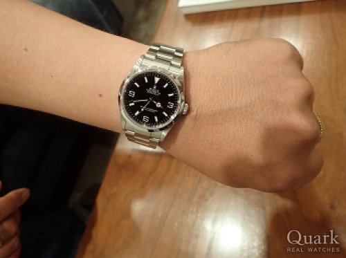 今まで金無垢の時計や、ケースサイズが大き目の時計を何本か購入してきたが、仕事場でも気軽に着けれる時計が一本欲しくて購入。Ref.114270は使い勝手が良く、視認性に特化したデザインが気に入っています。また、担当スタッフが薦めてくれた最終シリアルのランダム品番という事も気に入っています。