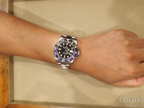憧れのGMTマスターⅡバットマンを探してました。現行品のジュビリーブレスよりオイスターブレスがかっこ良いと思いクォークにふらっと入り、バットマンに出会いました。高価な物なので購入を迷いましたが、僕の腕にバットマンを装着するイメージが離れず購入を決断しました。店員の古賀様の説明も丁寧でした。すでに持っている別の時計の説明もしていただき、新しい機能がわかり徳した気分です。仕事を頑張りまた何年かしたら、ロレックスをもう1本買いたいと思います。素敵な出会いに感謝致します。