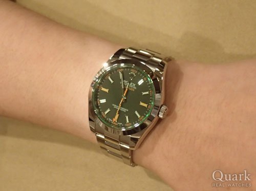 A様、この度はクォーク仙台店をご利用頂きまして誠にありがとうございました。お求め頂きましたMILGAUSS Ref.116400GVは、現行ミルガウス固有のグリーンサファイアクリスタルを搭載し、特別感を存分にお楽しみ頂けるモデルです。A様の良きパートナーとして末長くご愛用頂けますように、しっかりとサポートさせて頂きますのでご不明な点や気になる点等ございましたらいつでもお気軽にお申し付けくださいませ。またお時間ございましたら、是非クォーク仙台店に遊びにいらしてください。ありがとうございました。