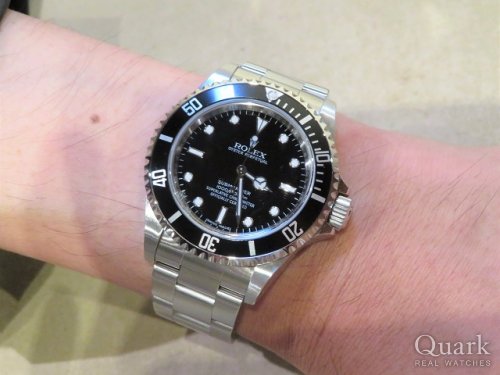 T様 この度は数ある時計店からクォーク上野本店をご利用いただき誠にありがとうございます。念願のM品番 SUBMARINER 14060Mご購入おめでとうございます!色々なお店を回られていたとの事でしたのでタイミング良くご紹介出来た事、私も嬉しく思います。ラグ幅やリューズガードがコンパクトで実用的にも優れたお時計ですので普段使いからビジネスシーンまで幅広くご使用くださいませ。ブレスレットの洗浄及び調整も無料で行っておりますので、お近くにお越しの際は遊びにいらしてくださいませ。お使いいただく上で何かご不明な点等ございましたら、また林までご相談ください。今後とも末永いお付き合いの程よろしくお願いいたします。