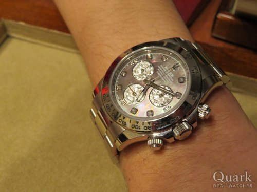 A様 この度は、クォーク銀座888店をご利用頂き誠に有難うございました。ルービックキューブを含め、様々な選択肢から、極小ロットのデイトナブラックシェルをお選びになられた事は、正解だったのではないでしょうか。WG素材の上品さとブラックシェルのコンビネーションは素晴らしいと思います。飾るのも良いですが、是非着けて堪能して下さいね。今後とも宜しくお願い申し上げます。 クォーク銀座888店 店長 日笠山