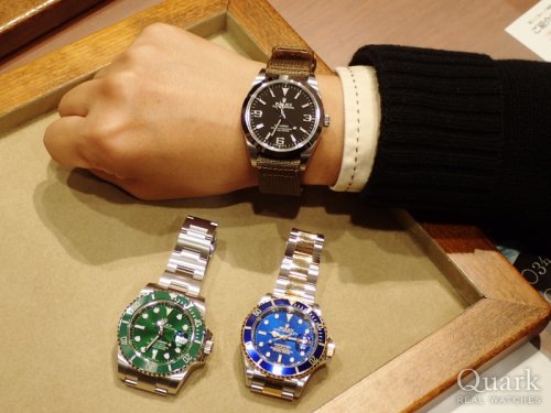 ロレックス道記念の10本目は、現行GMTマスターⅡペプシと決めておりましたが、急転直下のエクスプローラーの選択、自分自身、未だ、狐狸に化かされた心持であります。思えば、仙台店に足繁く通いだした4年前から、別のモデルを購入する際もいつもエクスプローラーをショーケースから取り出してもらってましたね。この日を迎える布石だったのかなー笑。クォークさん監修・制作のミリタリーベルト装着で今冬は楽しみ、同じくクォークさんのチャリティーラバーベルトも白、黒 2種入手出来ましたので、それ等を駆使し、他の人と被らないアレンジでこの相棒とも楽しんでいきたいと思います。